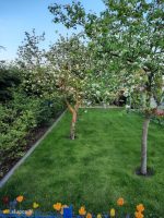 Wszystkie prace pielęgnacyjne oraz decyzje dotyczące planowania, nasadzania czy usuwania roślin są w gestii pani Jadwigi, ale nie można nie wspomnieć, że w cięższych pracach, w tym na przykład w koszeniu trawnika pod owocowymi drzewami, by miały gdzie bawić się wnuki, pomaga pani Jadwidze jej mąż pan Janusz.