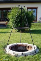 Na spotkanie wybiega nam pełen animuszu jamnik Foks, który strasznie cieszy się na gości i donośnie głosi ich przybycie. Po środku działki stoi dom z tarasem, z którego na trawnik wiedzie trawiasta skarpa i schody. Na przeciwko tarasu stoi sporych rozmiarów basen, z którego z przyjemnością w okresie letnim korzystają domownicy, a niedaleko basenu palenisko z grillem na trójnogu, przy którym przygotowuje się pyszne posiłki podczas biesiad z rodziną. Soczysty trawnik zaprasza do zdjęcia obuwia i spaceru na bosaka. Pod ogrodzeniem gospodyni posiała łąkę kwietną, która cieszy oko i wabi zapylacze. Łąka kwietna jest suszo-odporna, praktycznie nie wymaga dodatkowego podlewania, gdyż rośliny tworzące kwietne łąki mają nawet 25 razy głębsze korzenie i lepszą zdolność wchłaniania wody niż trawnik.