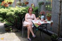 W kąciku wypoczynkowym królują rośliny umieszczone w donicach, znajdziemy tu całe bogactwo begonii, fuksji, batatów, koleusów a także daturę i oleandry, dzięki nim mamy wrażenie, jakbyśmy przycupnęli na moment w ogródku w Chorwacji czy Grecji.