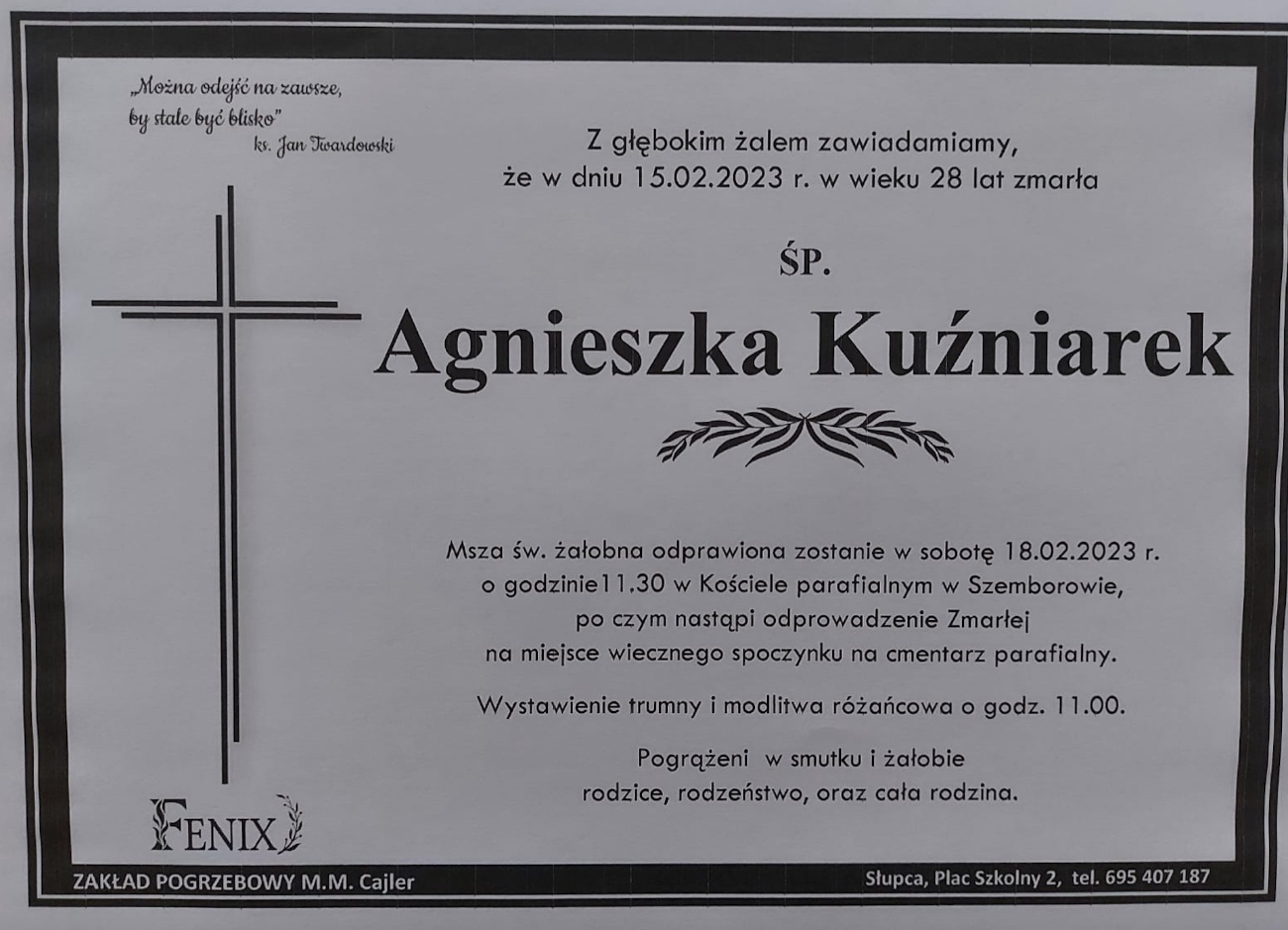 Wielkie wyrazy współczucia dla rodziny. Wieczny odpoczynek racz dać jej Panie,…