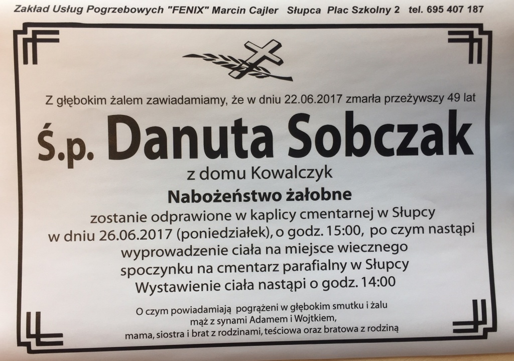 Danuta Sobczak, l. 49, zm. 22.06