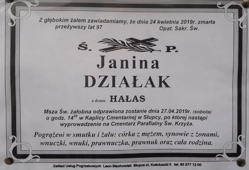 Zmarła najstarsza słupczanka