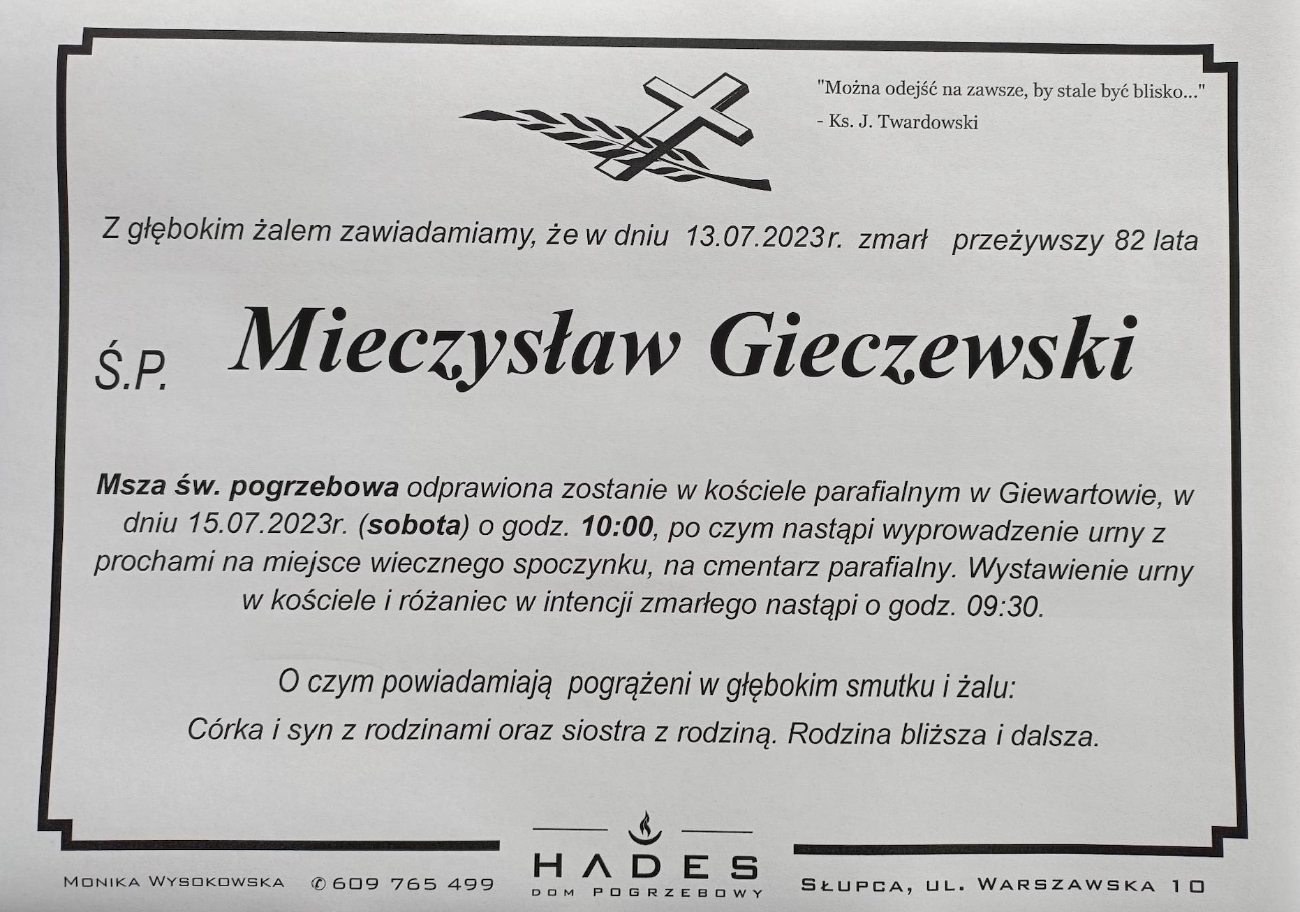 Mieczysław Gieczewski nie żyje