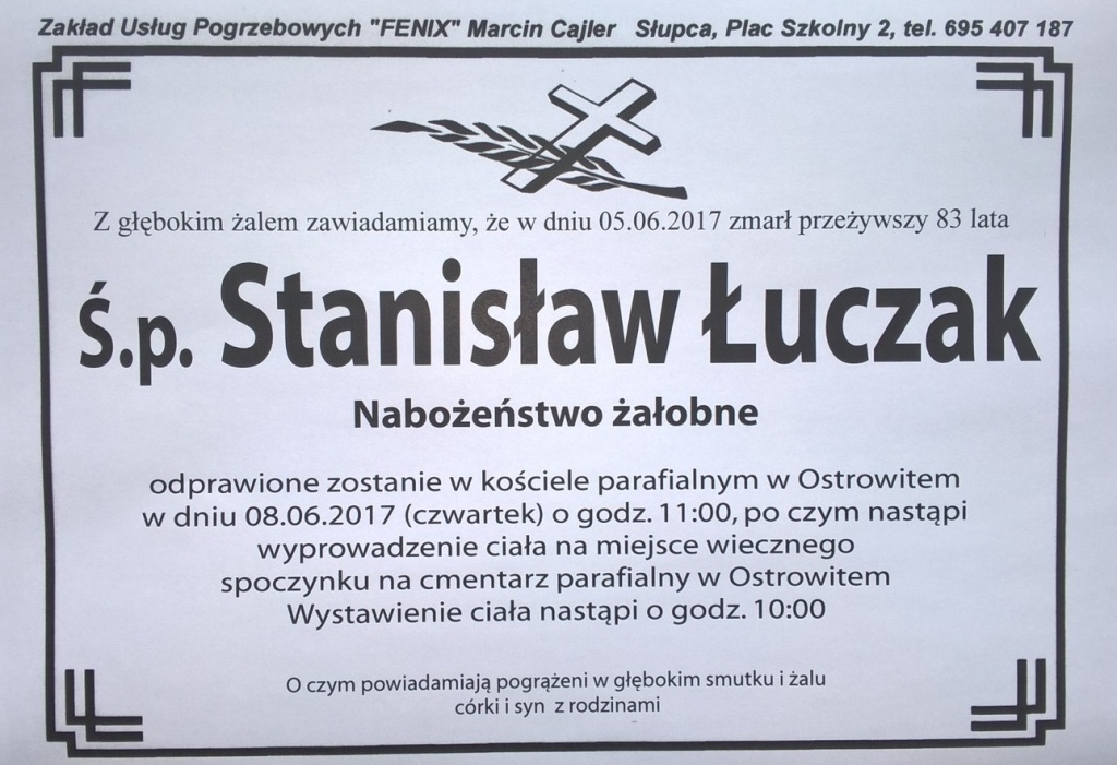 Stanisław Łuczak, l. 83, zm. 5.06