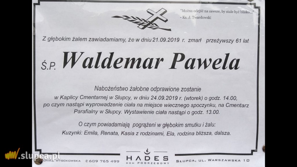 Waldku, Byłeś uczciwym i uczynnym . Takim Ciebie zapamiętamy. Za szybko od Nas odszedłeś, nie wszystko zostało powiedziane , tak wiele było przed Tobą …… . Będziesz zawsze w naszej pamięci. Rodzina z Gniezna.