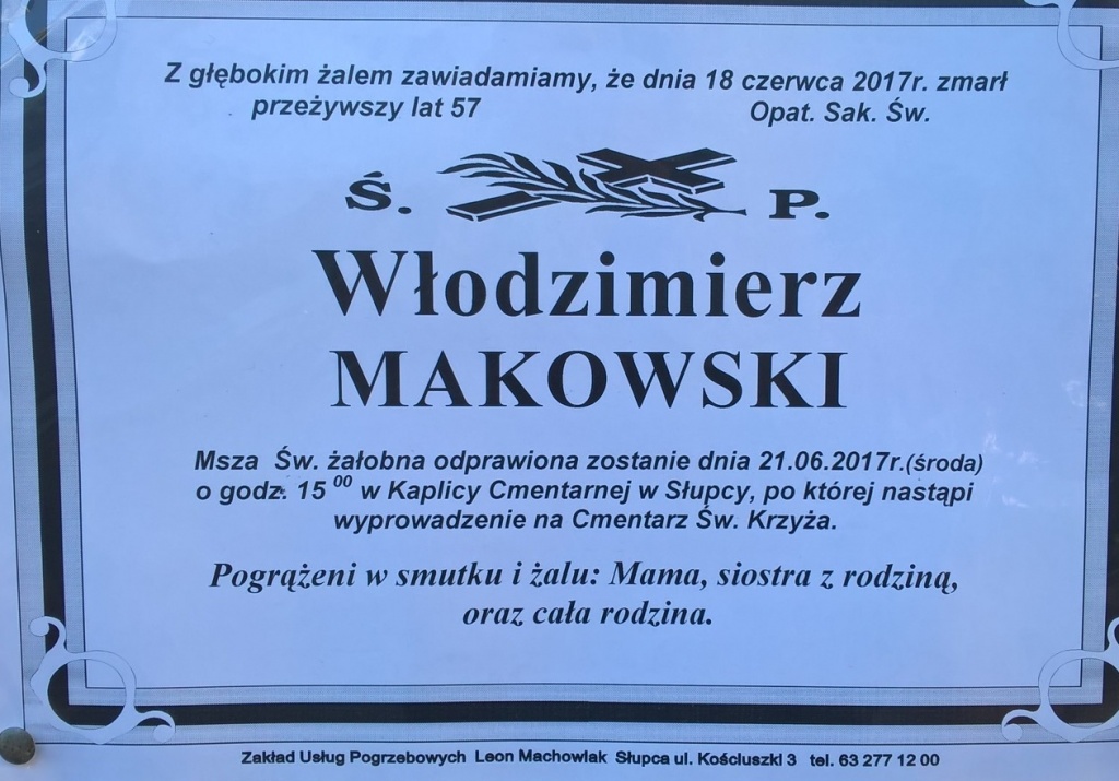Włodzimierz Makowski, l. 57, zm. 18.06