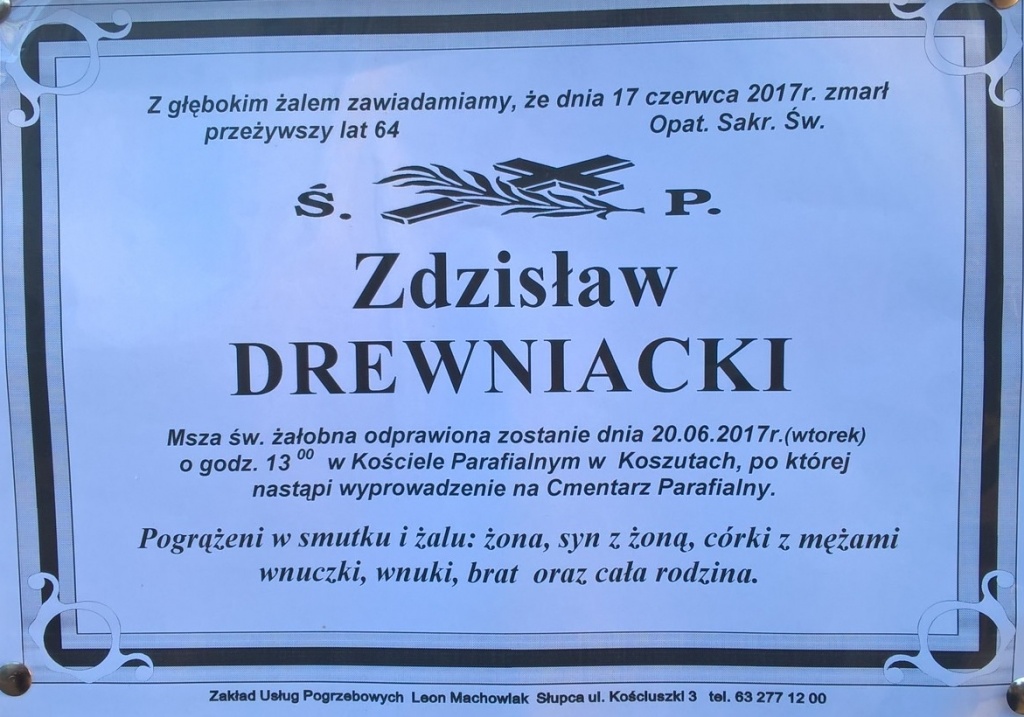 Zdzisław Drewniacki, l. 64, zm. 17.06