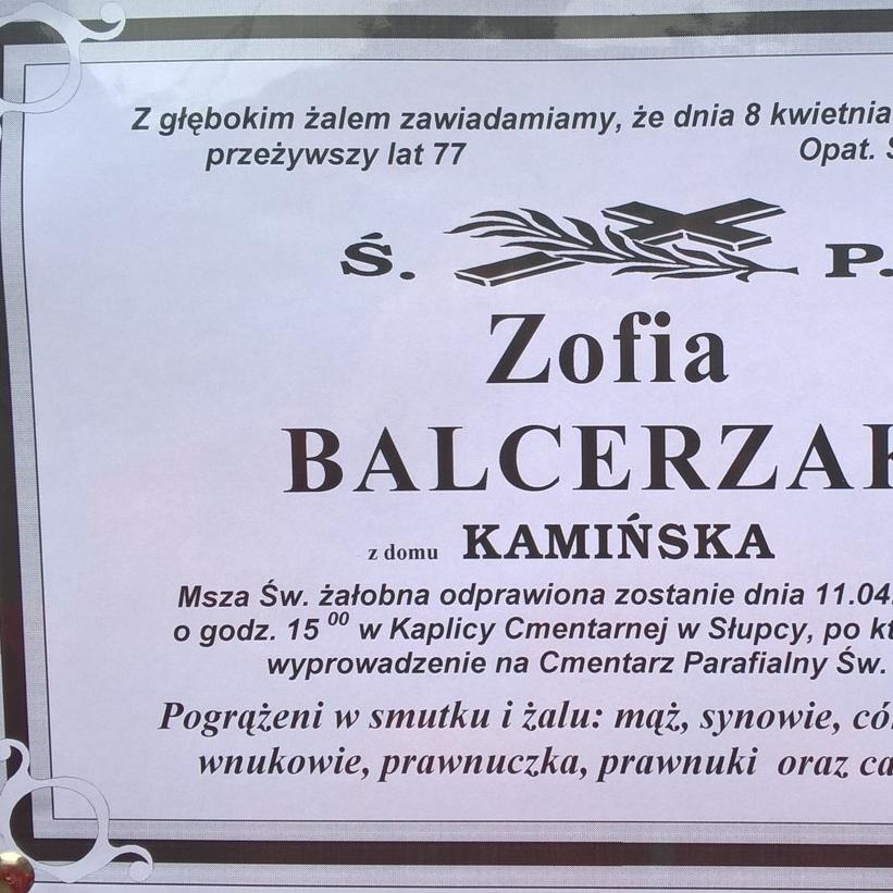 Zofia Balcerzak, l. 77, zm. 8.04
