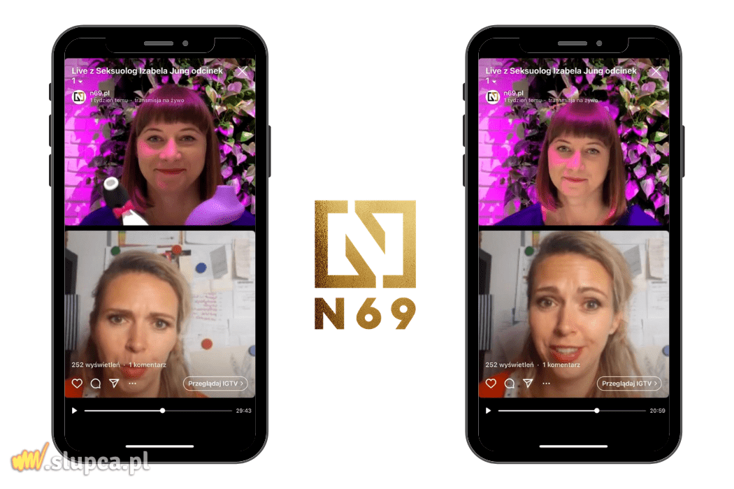 Na naszym profilu na Instagramie N69 cyklicznie co dwa tygodnie odbywają się transmisje na żywo, podczas których seksuolog Izabela Jung przez godzinę odpowiada na zadane przez Was pytania i udziela Wam porad seksuologicznych. Pytania możecie wcześniej nadsyłać do nas w wiadomości prywatnej na naszym profilu. Każde spotkanie dotyczy innej tematyki, a wszystkie dobierane jest zgodnie z Waszymi prośbami i największym zapotrzebowaniem. Jeśli macie kwestię, która Was nurtuje, a z różnych przyczyn postanowiliście zamieść ją pod dywan, teraz macie okazję zasięgnąć opinii eksperta.