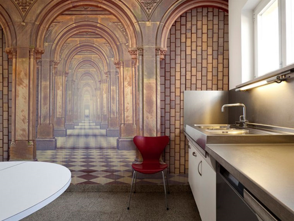 Jak wykorzystać perspektywę i fototapety w kuchni do wewnętrznej dekoracji ścian? Dokładnie tak samo, płaskie zdjęcia tworzą w naszej wyobraźni perspektywę głębi, tak samo tapety pozwalają uzyskać przestrzeń w pomieszczeniu. Dla ludzkiego mózgu ściana przestaje istnieć, a w wyobraźni powstaje uliczka, przedstawiona na fototapetach, jednocześnie pomieszczenie staje się optycznie głębokie jak w rzeczywistości. Obrazy tego typu tworzone w postaci cyfrowej, a następie przekazywane do druku. W rezultacie przybierają bardzo realistyczny, niemal futurystyczny charakter.