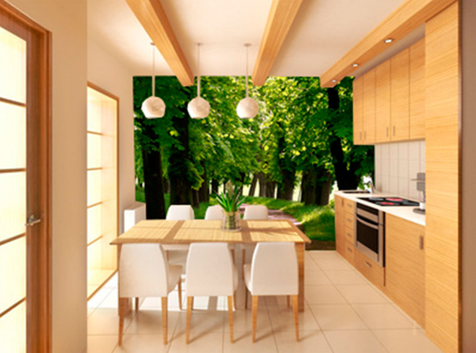 Ściana z perspektywą może korzystnie podkreślić zalety dużych pomieszczeń i ukryć mankamenty niewielkich przestrzeni. Najlepiej jednak sprawdza się w mieszkaniach i niewielkich przytulnych kuchniach urządzonych w stylu klasycznym, shabby chic, hi-tech. Fototapety poszerzające wnętrze kuchni, zmieniają tradycyjne wyobrażenie o projektowaniu, a także pomagają stworzyć unikalny i nowoczesny wystrój.