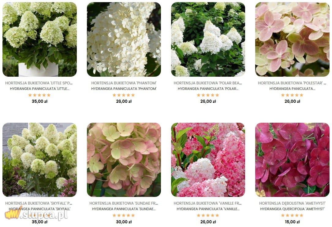 Wiele zależy od odmiany oraz wielkości, sadzonki hortensje ogrodowe potrafią kosztować zarówno około 15 zł, jak i 70 zł. Zwróćmy uwagę na wysokość, do jakiej dorasta dorosła hortensja ogrodowa. Sadzonki karłowate zapewniają rozrost do 0,5 – 1 m, podczas gdy tradycyjne odmiany hortensji mogą sięgać nawet 4 m. To jednak rośliny długowieczne, więc inwestycja w sadzonki hortensji to gwarancja pięknego ogrodu na długie lata. Sadzonki hortensji ogrodowych, zarówno ceny jak i odmiany, możecie przejrzeć na OgrodowyMlyn.pl.
