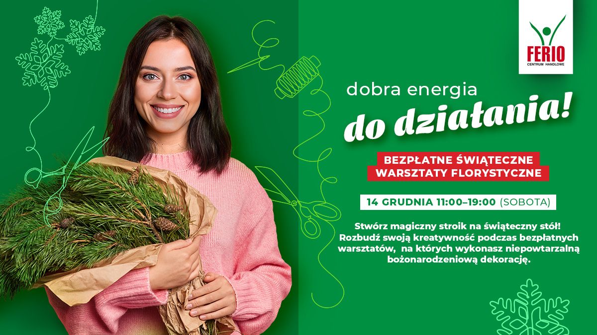 Centrum Handlowe Ferio Konin zaprasza na wyjątkowe, świąteczne warsztaty z cyklu „Zrób to Sam”! Już 14 grudnia w świątecznej atmosferze uczestnicy będą mieli okazję własnoręcznie stworzyć stroiki, które ozdobią ich domy na czas Bożego Narodzenia.