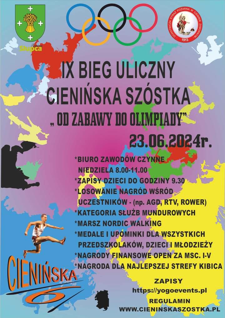 Szanowni Państwo, Sportowcy i Kibice! Jest mi niezmiernie miło zaprosić Was na IX Bieg Uliczny Cienińska Szóstka pod hasłem „Od zabawy do Olimpiady” – mówi Hubert Pokrop dyrektor biegu. Jak co roku odbędzie się rywalizacja dla wszystkich grup wiekowych oczywiście z dużą dawką uśmiechu. Nie może Was zabraknąć. Czeka na Was wiele nagród. Zapisy na stronie: https://yogoevents.pl lub pod linkiem: https://dostartu.pl/ix-bieg-uliczny-cieninska-szostka-od-zabawy-do-olimpiady-v12132