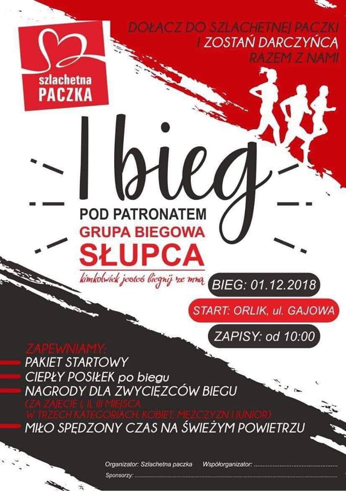 I bieg Szlachetnej Paczki pod patronatem Słupeckiej Grupy Biegowej już w tą sobotę. Zapisy od godz. 10:00, start orlik ul. Gajowa. Zapraszamy!