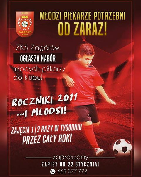 Spełnij jego pasję i zabierz go na trening! Drodzy rodzice zapraszamy chłopców i dziewczynki do granie w piłkę w Zagórowie. Udział w tych zajęciach może być początkiem sportowej kariery, niekoniecznie piłkarskiej. Wiemy, że nie każdy będzie nowym Lewandowskim ale dla dzieci treningi z rówieśnikami to zabawa i radość!