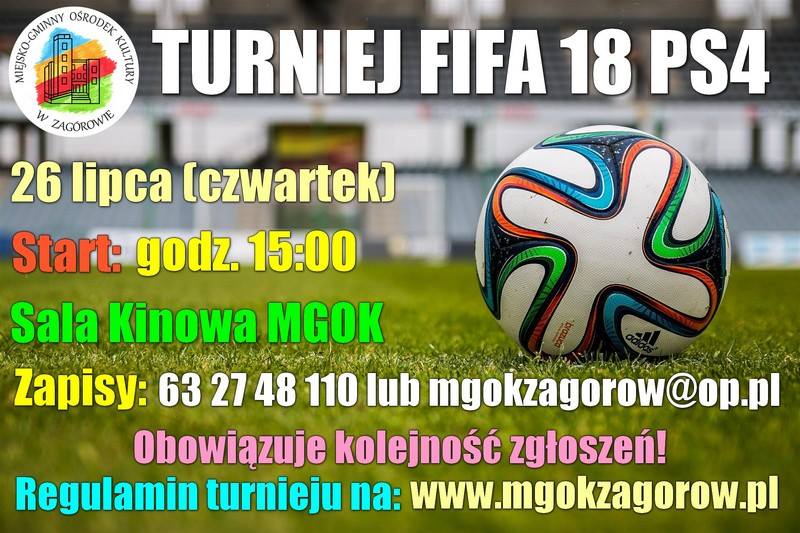 Miejsko Gminny Ośrodek Kultury w Zagórowie informuje, że zostały jeszcze ostatnie wolne miejsca na turniej FIFA 18 PS4. – Nie czekajcie na ostatnią chwilę – piszą pracownicy ośrodka. Czeka Was świetna zabawa.