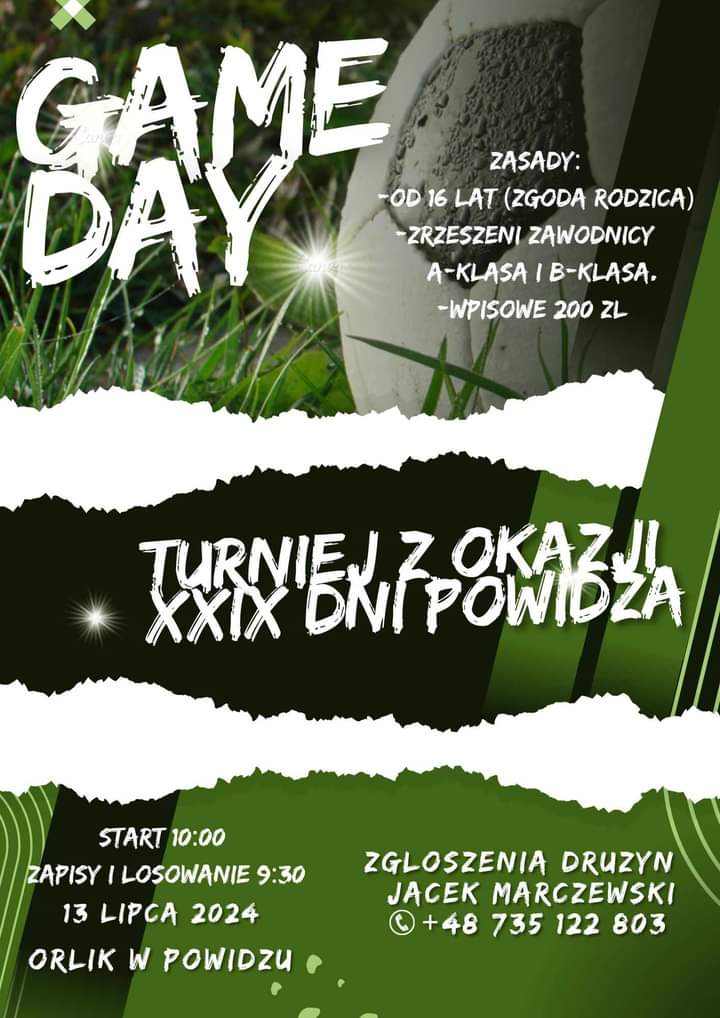 Już w najbliższą sobotę – 13 lipca na powidzkim Orliku rozegrany zostanie Turniej z okazji 29. Dni Powidza. W imieniu organizatorów zachęcamy do udziału!