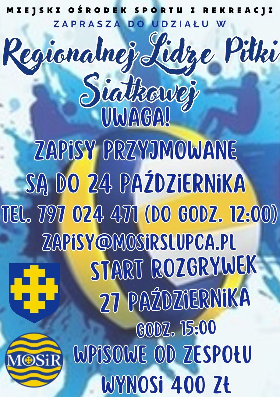 Jeszcze tylko dwa dni trwać będą zapisy do udziału w Regionalnej Lidze Piłki Siatkowej. Tegoroczne zmagania wystartować mają 27 października. Nieco później ruszy Amatorska Drużynowa Liga Tenisa Stołowego do której zapisy właśnie ruszyły. Więcej informacji na plakatach!