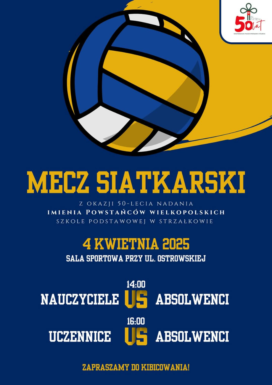 Już w ten piątek zapraszamy Państwa na mecze siatkarskie z okazji 50 rocznicy nadania imienia Powstańców Wielkopolskich Szkole Podstawowej w Strzałkowie! – informują organizatorzy. Zagrają: nauczyciele, absolwenci i uczniowie – drużyna dziewcząt. Wstęp wolny! Zapraszamy do kibicowania!