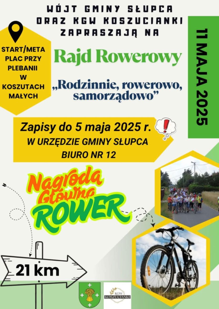 Choć dopiero co wystartował kwiecień, my zapraszamy by zaplanować sobie już 11 dzień maja. Wtedy to odbędzie się Rajd Rowerowy na który zapraszamy w imieniu organizatorów. Więcej o rajdzie dowiecie się z plakatu.