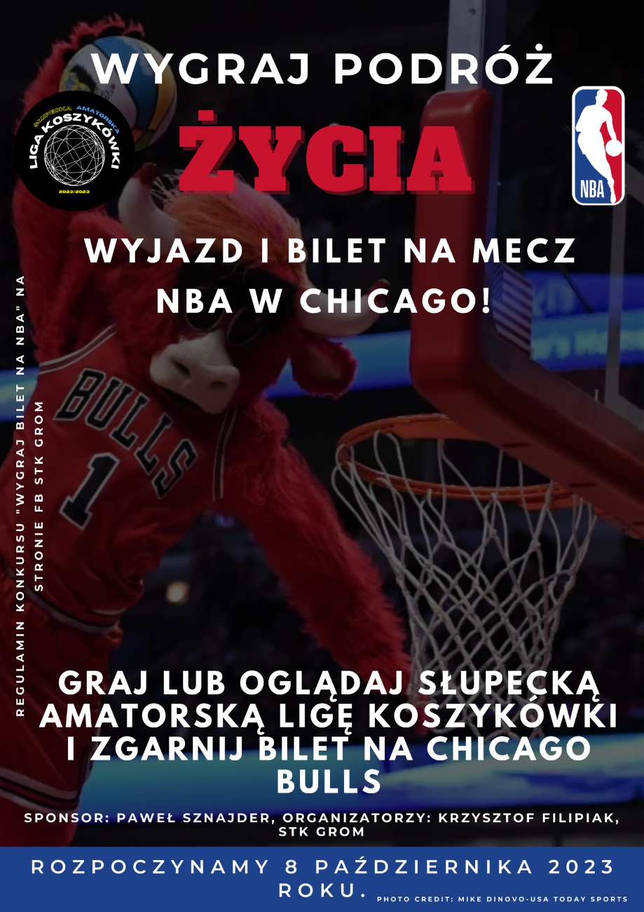Mamy dla was prawdziwy hit! – informuje Słupeckie Towarzystwo Koszykówki Grom, razem ze sponsorem Pawłem Sznajderem słupeckim przedsiębiorcą i jednym z członków STK Grom mamy zamiar spełnić marzenie i zaprosić do podróży, pobytu w USA i biletu na mecz NBA w sezonie 2024/25 w Chicago. Każdy ma szansę na tą wspaniałą podróż, wystarczy regularnie uczestniczyć jako kibic w naszych rozgrywkach Słupeckiej Amatorskiej Ligi Koszykówki w sezonie 2023/2024. Zaczynamy już 8 października w hali MOSiR. Regulamin konkursu „Wygraj wyjazd na mecz NBA” poniżej. https://docs.google.com/…/1-oIONplKjursRqMJ…/edit…