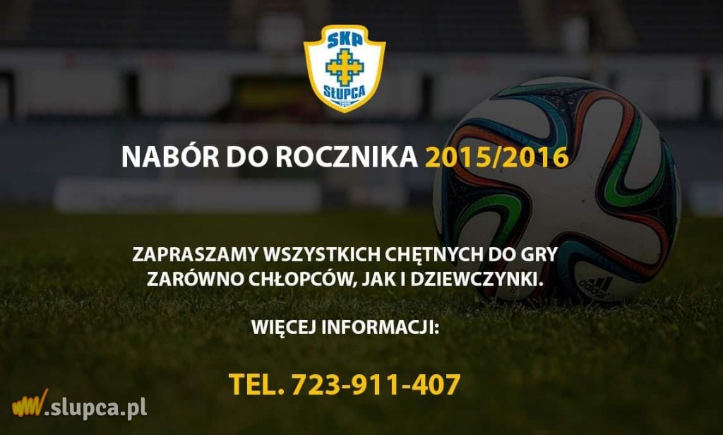 Słupecki Klub Piłkarski organizuje nabór uzupełniający do wszystkich zespołów – od skrzatów począwszy, a na seniorach skończywszy. Opiekunem najmłodszego zespołu skrzatów będzie trener Henryk Wyszyński. Więcej informacji pod numerem tel. 723 911 407. Zapraszamy również na naszą stronę internetową www.skpslupca.pl