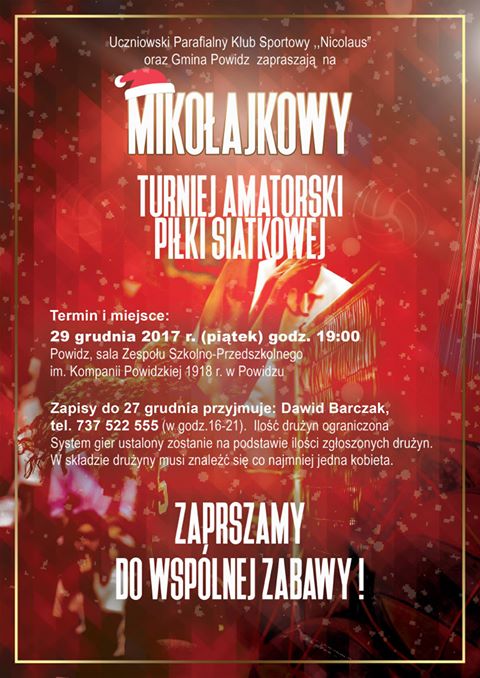 Zapraszają na Mikołajkowy Amatorski Turniej Piłki Siatkowej