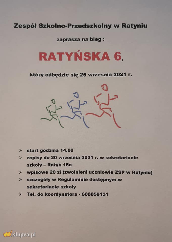 W imieniu organizatorów 25 września zapraszamy do udziału w biegu Ratyńska Szóstka.