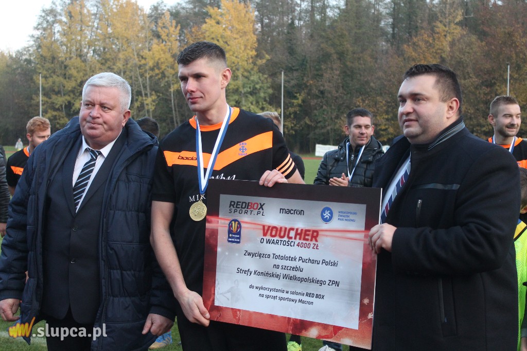 W ligowym sezonie 2011/12 piłkarze SKP Słupca zdobyli Puchar Polski w okręgu konińskim. Wtedy to 3:0 ograli Victorię Września. W poniedziałek 11 listopada w 101 rocznicę odzyskania niepodległości, zespół prowadzony obecnie przez Mirosława Kwaśnego po raz kolejny zdobył to trofeum. W strefowym finale Totolotek Pucharu Polski, słupczanie po golach Witowskiego, Kwaśnego i Michalaka ograli Polonusa Kazimierz Biskupi. Więcej w Kurierze