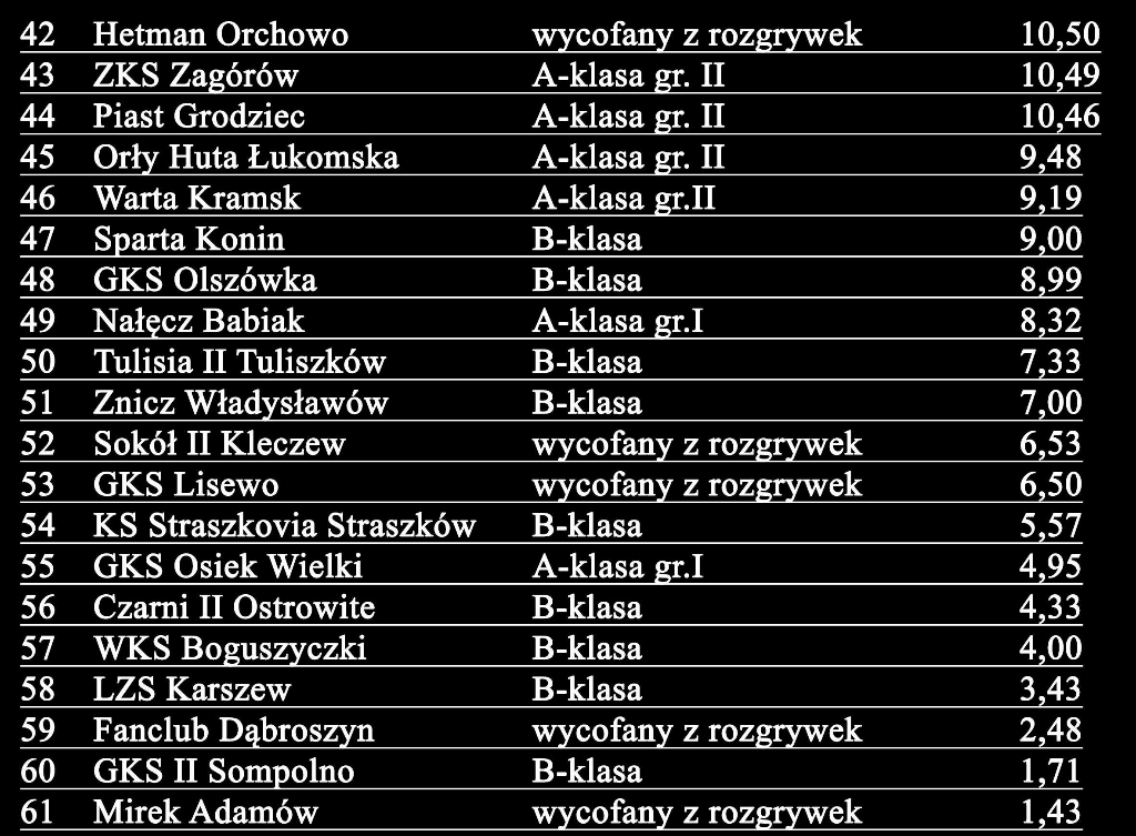 Jesienią po raz pierwszy OZPN Konin przedstawił ranking klubów. Wzorem rankingu FIFA wzięliśmy pod uwagę ostatnie sezony wszystkich zespołów z naszego regionu – zarówno męskich, jak i żeńskich. Efektem tego był jeden wspólny ranking, który budził jednak kontrowersje. O ile każdy ranking, który publikowany jest w piłkarskim świecie budzi zawsze jakieś zastrzeżenia, o tyle w trakcie przerwy zimowej konsultowaliśmy kształt rankingu z działaczami, zawodnikami oraz trenerami z naszego regionu. Efektem tego są dwa rankingi, a więc podział na męski i żeński. W obydwu liczba punktów określona jest na podstawie kilku składowych. Na czele rankingu żeńskiego jest oczywiście Medyk Konin i w rankingu tym zapewne niewiele będzie rotacji. Zapewne dla wielu kibiców liczba kobiecych drużyn w Naszym terenie jest zagadką. Tymczasem na szczeblu seniorskim występuje siedem kobiecych drużyn z naszego terenu. Drużyny te bazują na systemie szkoleniowym Medyka, występując na czterech poziomach rozgrywkowych. Na piłkarskiej mapie kobiecych drużyn oprócz Konina – swą reprezentację ma Ślesin.