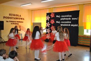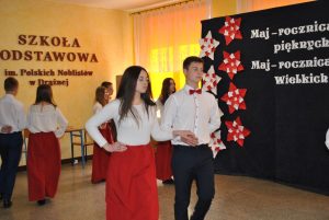 Dnia 28 kwietnia 2023r. w Szkole Podstawowej im. Polskich Noblistów w Drążnej montażem słowno-muzycznym upamiętniono 232. Rocznicę uchwalenia Konstytucji 3 Maja. Uczniowie przedstawili sytuację związaną jednym z najważniejszych wydarzeń w historii Polski, bowiem Konstytucja 3 Maja była pierwszą w Europie ustawą zasadniczą, a drugą na świecie. W występie wzięli udział: Nikodem Czerniejewski, Dawid Drzewiecki, Damian Kukulski, Izabela Wrzesińska, Iga Parol, Zuzanna Andrzejewska oraz Miłosz Piński. Uroczystość uświetnił podniosły polonez w wykonaniu uczniów klasy VIII: Nikoli Gołębiowskiej, Julii Gorzelańczyk, Kingi Kamińskiej, Amelii Skrzydlewskiej, Marty Roszak, Nadii Talentowskiej, Konrada Grzelaka, Łukasza Grzelaka, Mateusza Mrozińskiego, Wojciecha Pińskiego, Gracjana Sypniewskiego, Daniela Sławskiego. A wzruszający taniec ze wstęgami o narodowych barwach zaprezentowały uczennice klasy III: Marcelina Siuda, Julia Bojarska, Julia Jóźwiak, Julia Budzińska, Zuzanna Miętkiewicz, Lena Kolaska, Kornelia Borowiec, Aleksandra Pająk. Dodatkowych emocji dostarczyły piosenki patriotyczne wykonane przez: Nikolę Gołębiowską, Izabelę Wrzesińską i Karola Manca.
