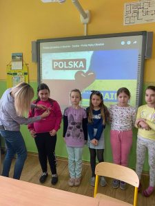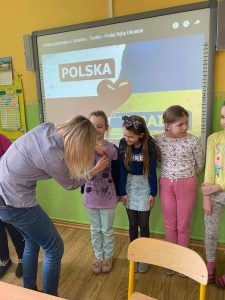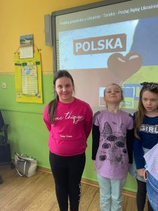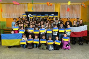 Społeczność Szkoły Podstawowej im. Polskich Noblistów włączyła się w akcję wsparcia dla Ukrainy. W geście solidarności z narodem ukraińskim w piątek 4 marca 2022r. wszyscy uczniowie mieli przypięte niebiesko-żółte wstążki. Przy wejściu do szkoły wywieszono flagę Ukrainy i Polski.
