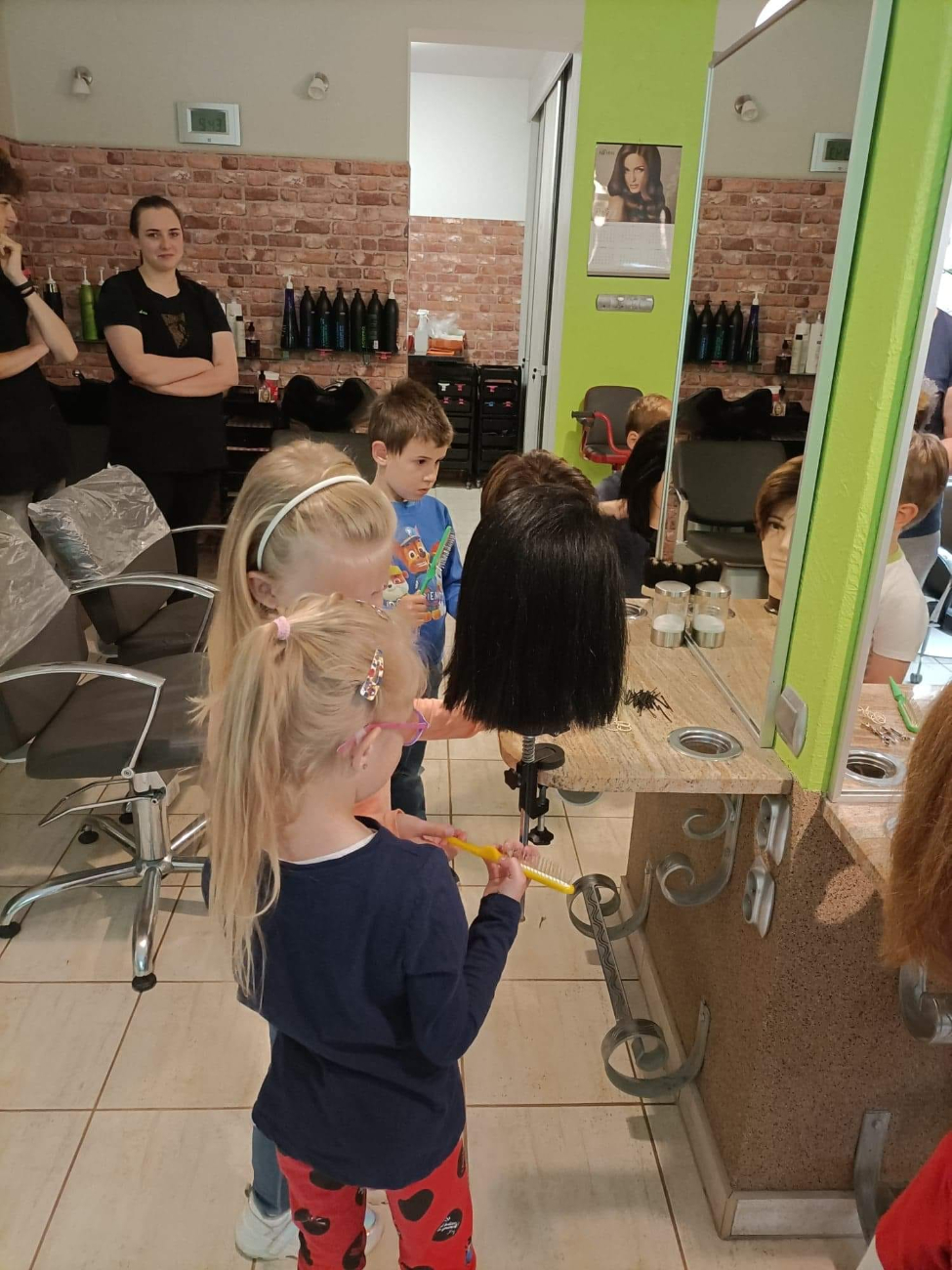 Starszaki z naszego przedszkola zostały zaproszone do salonu fryzjerskiego pani Sylwii Orzechowskiej.
