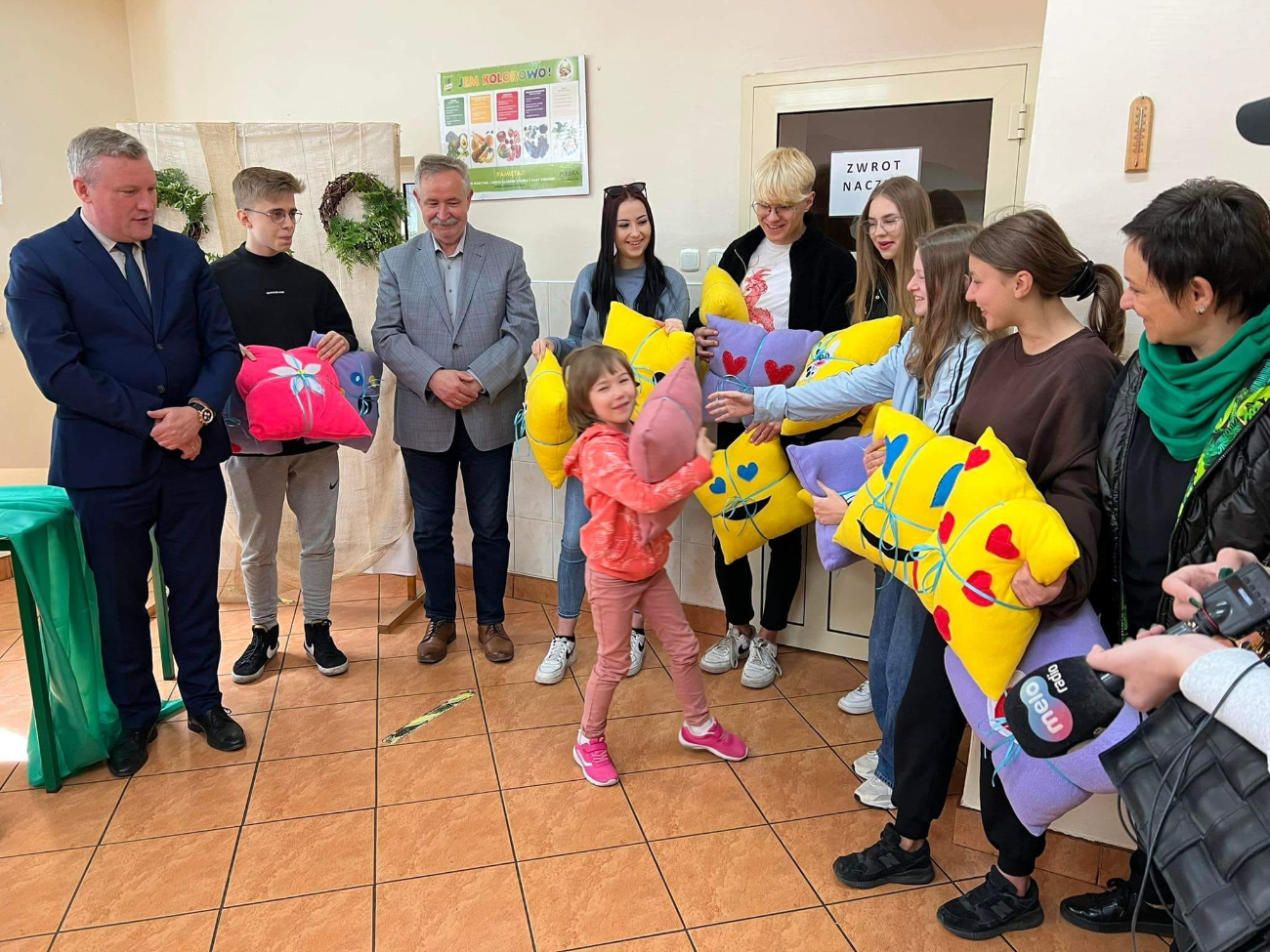 Dzieci z Ukrainy, które chodzą do słupeckich szkół i przedszkoli, otrzymały dziś poduszki. Nie są to jednak zwykłe poduchy, ale takie, które mają za zadanie pożerać smutki. Właśnie w ramach projektu Emotkowe pożeracze smutków uszyła je młodzież z Ekonomika. Oni również dziś obdarowali nimi gości z Ukrainy. –Dziękujemy, to był świetny pomysł – podsumował burmistrz Michał Pyrzyk, który w swoich mediach społecznościowych pokazał zdjęcia z dzisiejszej akcji.