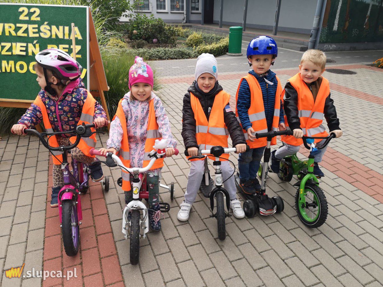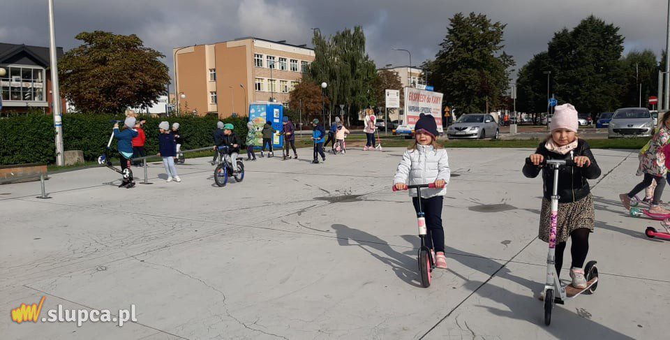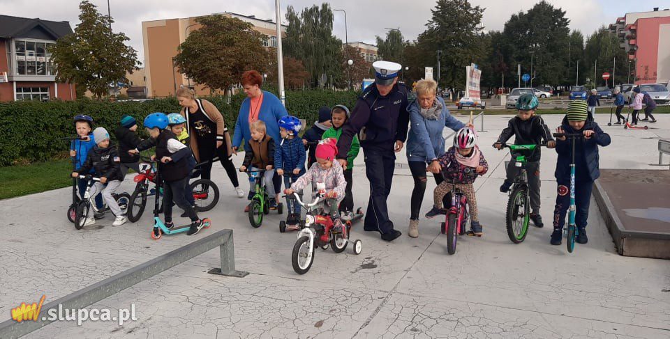 a także usłyszeć sygnały . Na zakończenie wszystkie przedszkolaki pod czujnym okiem policji wyposażone w kaski, wsiadły na rowery i hulajnogi, by wspólnym przejazdem jednośladami uczcić dzień bez samochodu. Policjanci rozdali dzieciom kolorowanki