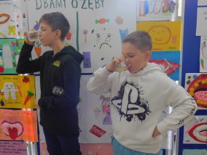 Podczas spotkania wręczono również nagrody wyróżnienia w szkolnym konkursie skierowanym dla uczniów klas I-III zorganizowanym przez Samorząd Uczniowski z okazji obchodów Światowego Dnia Zdrowia Jamy Ustnej. W Konkursie pod hasłem „Zdrowe zęby mamy, gdy o nie dbamy” wyróżnieni zostali: