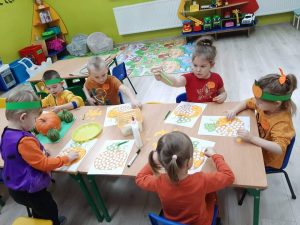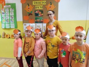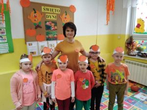 W Przedszkolu w Młodojewie święto to obchodziliśmy w środę 17 listopada. Dzieci wraz z paniami tego dnia ubrały się na pomarańczowo – można było poczuć się jak na dyniowej grządce. Podczas zajęć dzieci poznały wielką różnorodność dyń i wzbogaciły wiedzę na ich temat. W każdej z grup odbyły się dyniowe zabawy: klasyfikowanie dyń wg wielkości, koloru, kształtu, szeregowanie od największej do najmniejszej, przeliczanie, sadzenie, wspólne malowanie „Dyniowej Księżniczki i Dyniowego Rycerza” oraz dyniowy tor przeszkód. Dzień ten przyniósł wiele niezapomnianych wrażeń, radości i zabawy.