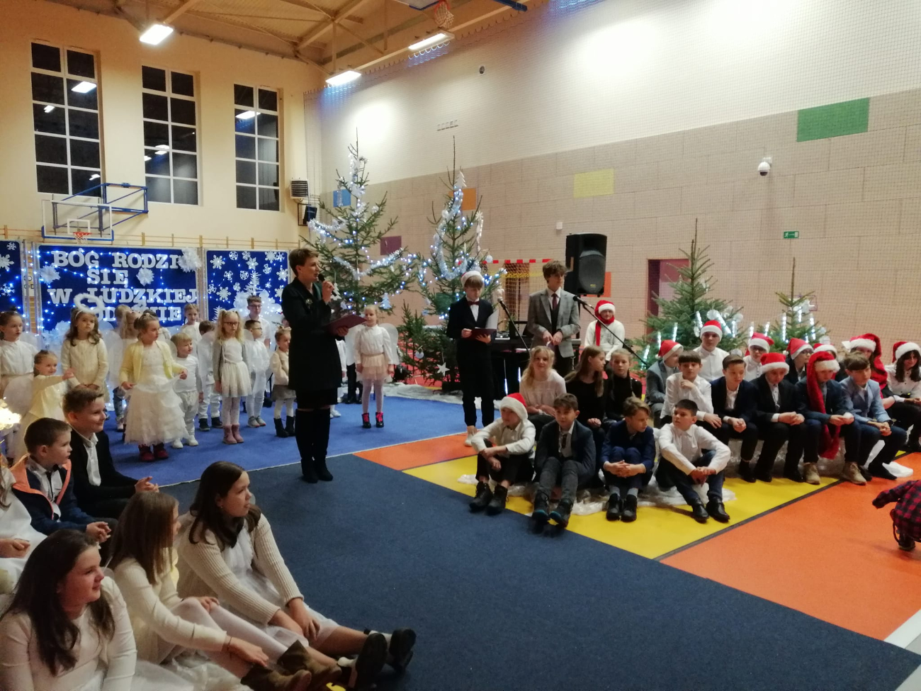 16 grudnia wszystkie drogi prowadziły do hali sportowej w Kowalewie Opactwie, gdzie uczniowie wraz z pracownikami szkoły zaprosili lokalną społeczność na świąteczny występ. Niezwykłe doznania artystyczne zapewnili przedszkolaki oraz uczniowie, których przygotowała Pani Beata Jarecka. Oprawę muzyczną zawdzięczamy naszym zdolnym wirtuozom przygotowanym przez Panią Paulinę Winkler.