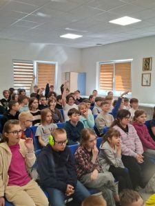 • Najmłodsi uczniowie obejrzeli film edukacyjny „Zachowaj równowagę”, który przypomniał podstawowe zasady zdrowego odżywiania.