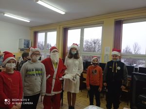 W dniu 6 grudnia odbyły się w naszej szkole mikołajki. W związku z tym wszystkie dzieci, nauczyciele i pracownicy szkoły zostali obdarowani drobnymi słodkimi upominkami przez Świętego Mikołaja i jego pomocnicę.