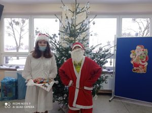 W dniu 6 grudnia odbyły się w naszej szkole mikołajki. W związku z tym wszystkie dzieci, nauczyciele i pracownicy szkoły zostali obdarowani drobnymi słodkimi upominkami przez Świętego Mikołaja i jego pomocnicę.