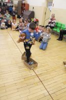 Jak na urodziny przystało – była huczna impreza z życzeniami, balonami i drobnymi słodkościami na koniec. A wszystko to za sprawą pań pracujących w szkolnej bibliotece oraz świetlicy, które przygotowały moc atrakcji dla najmłodszych uczniów naszej szkoły. Do wspólnej zabawy przyłączyły się także nasze panie dyrektor, które kibicowały wszystkim odważnym dzieciom biorącym udział w przeróżnych konkurencjach.