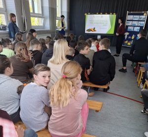 Podczas zajęć uczniowie dowiedzieli się, jak ogromne znaczenie dla prawidłowego rozwoju i dobrego samopoczucia mają codzienne wybory żywieniowe. Prelegent w przystępny i angażujący sposób omówił zasady zdrowego odżywiania, zwracając szczególną uwagę na regularność posiłków, różnorodność diety, rolę warzyw i owoców oraz znaczenie odpowiedniego nawodnienia organizmu. Podkreślono również, jak ważna jest codzienna aktywność fizyczna jako nieodłączny element zdrowego stylu życia.