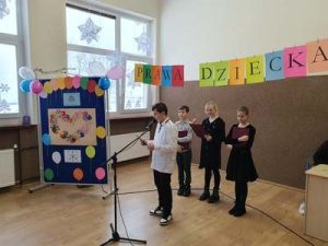 W piątek 10 grudnia odbył się apel z okazji Światowego Dnia Praw Człowieka, który poświęcony był głównie Konwencji o Prawach Dziecka. Czwartoklasiści w swoim wystąpieniu przypomnieli, że dzieci mają nie tylko obowiązki, ale także prawa, z których mogą i powinni korzystać. Głównym celem apelu było przypomnienie dzieciom treści tych praw oraz uświadomienie, że dorośli muszę ich przestrzegać.