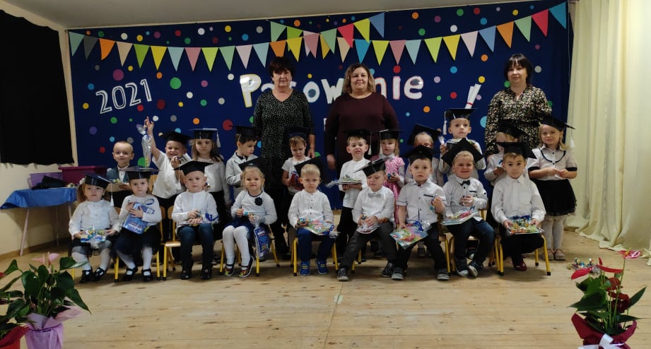Przedszkolakom życzymy, aby nowy rozdział w ich życiu, w roli przedszkolaka przyniósł im wiele radości, samych pogodnych i przyjemnych chwil w gronie kolegów oraz ciekawych doświadczeń. Uroczystość przygotowana była przez Joannę Miśkiewicz oraz Kamillę Kowalską. Serdeczne podziękowania należą się również Rodzicom, którzy przygotowali dla przedszkolaków upominki oraz słodką niespodziankę.