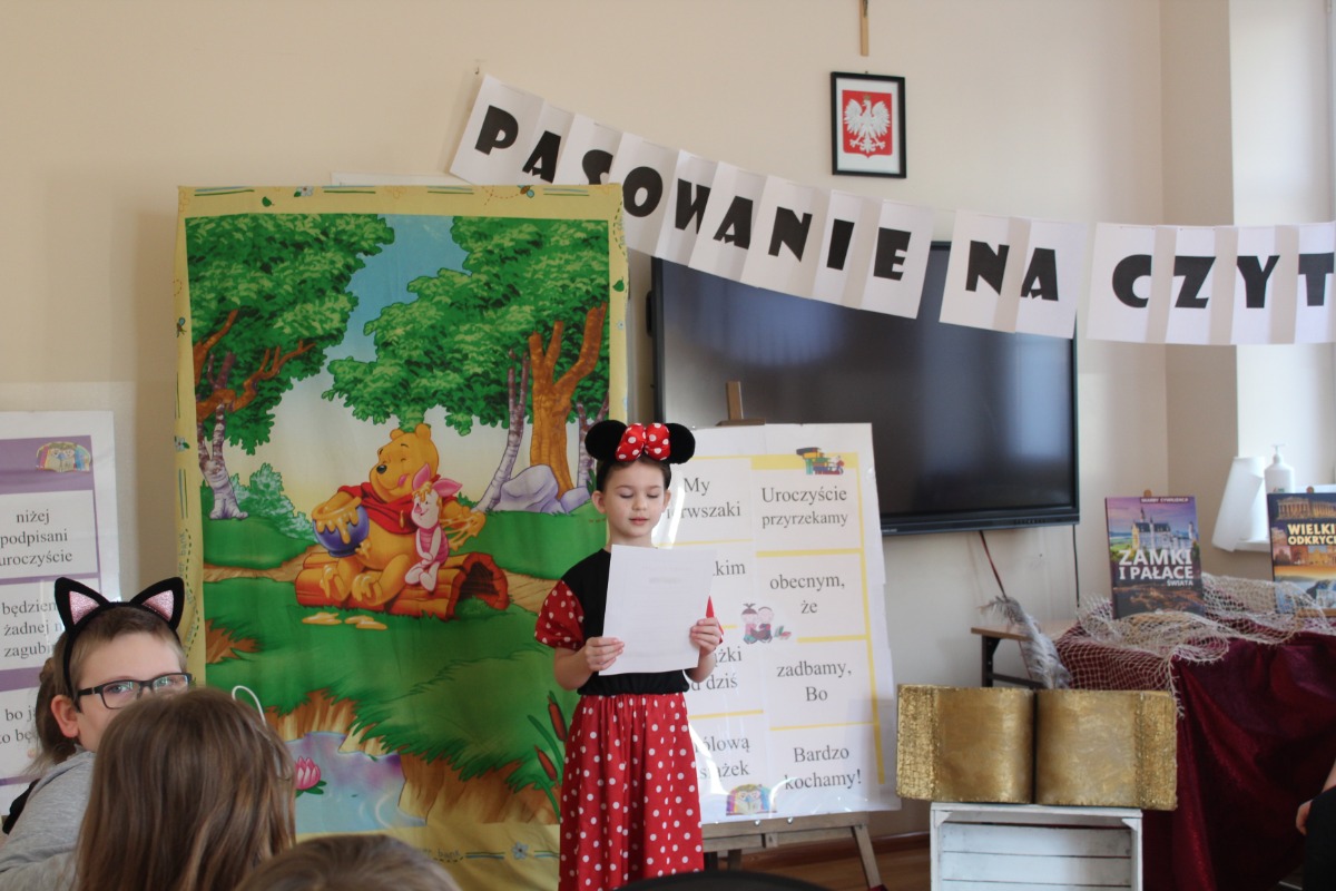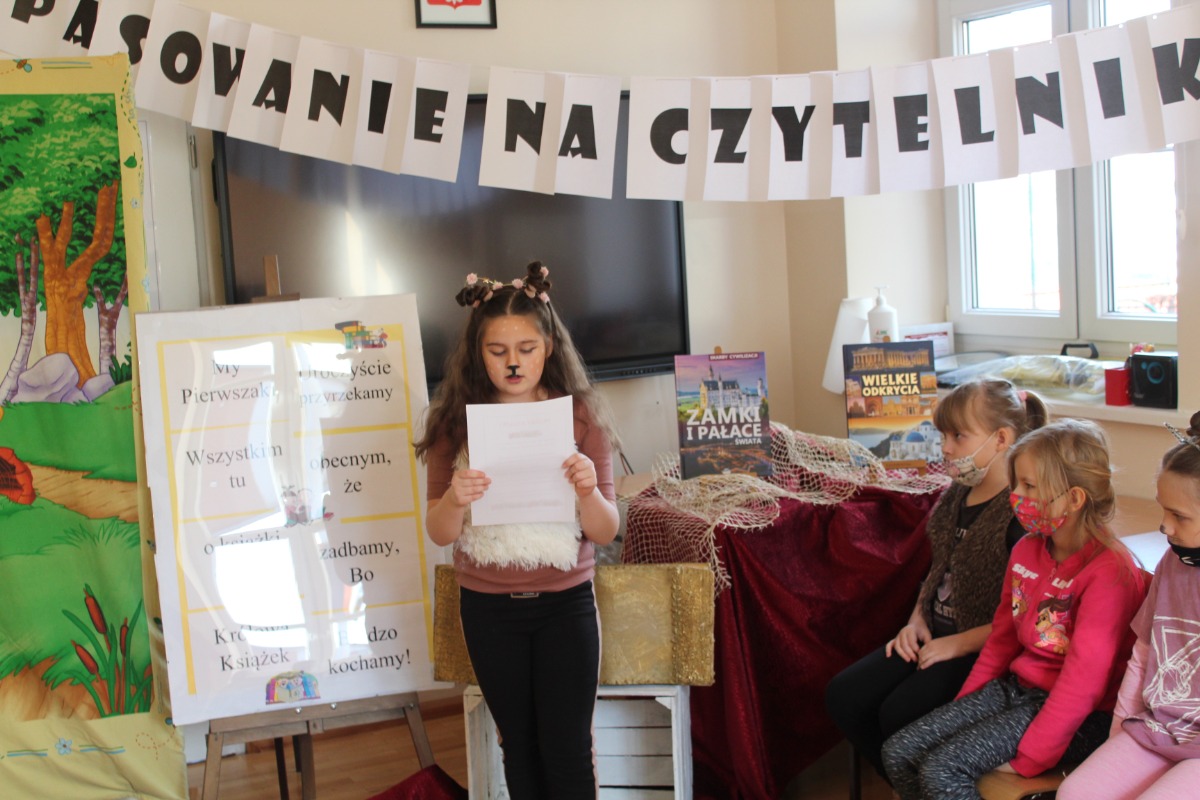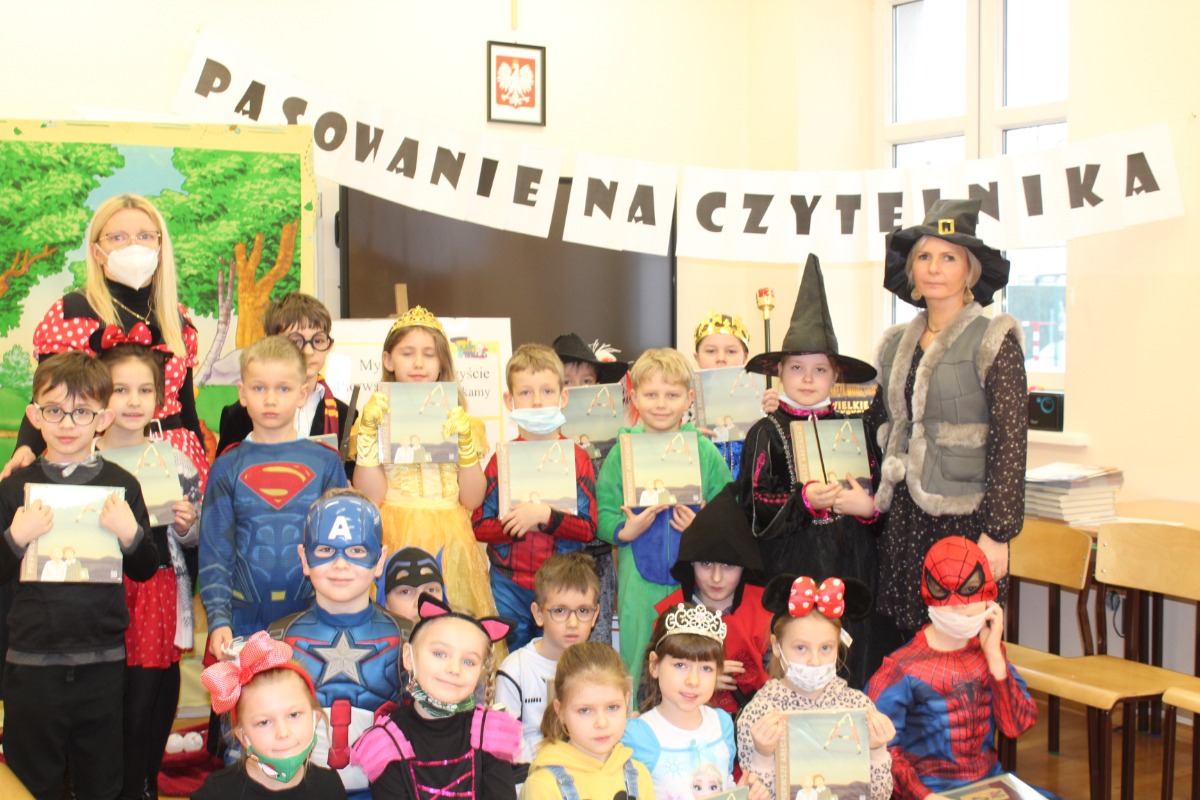 Tradycyjnie, od kilku lat, w lutym szkolna biblioteka organizuje poranek, podczas którego w poczet czytelników szkoły zostają uroczyście pasowani i przyjęci pierwszoklasiści. W tym roku, ze względu na restrykcje sanitarne, pasowanie odbyło się w dwóch grupach. Najmłodsi uczniowie poznali tajniki pracy bibliotekarza, zapoznali się z rozkładem pomieszczeń bibliotecznych i zasadami wypożyczeń. Uroczystości pasowania towarzyszyły apel książek do czytelników, bajkowe przebrania pierwszoklasistów i upominki na inaugurację przygody z książką.
