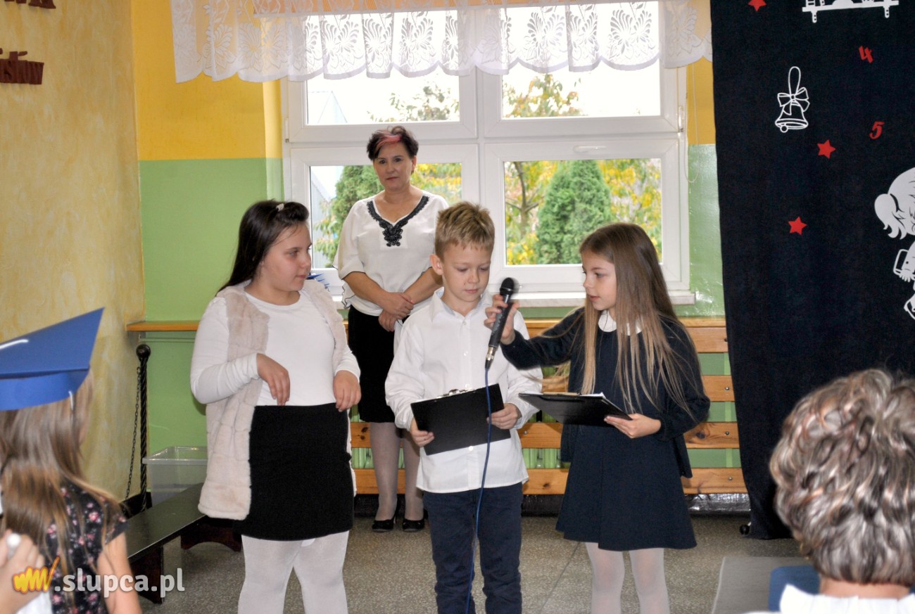 27 października odbyła się w naszej szkole uroczystość pasowania na ucznia. Jest to szczególny dzień, który na długo pozostanie w pamięci każdego ucznia klasy pierwszej. W tym dniu dzieci oficjalnie przyjęte zostały do grona uczniów szkoły. Podczas uroczystości, w obecności zaproszonych gości – radnego Pana Jana Kujawy oraz zastępcy Przewodniczącej Rady Rodziców Szkoły Pani Moniki Olszewskiej, Rodziców oraz uczniów klasy II i III pierwszoklasiści pokazali, jak pięknie potrafią śpiewać, grać na instrumentach i recytować wiersze.