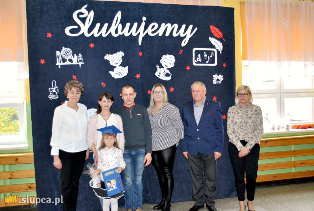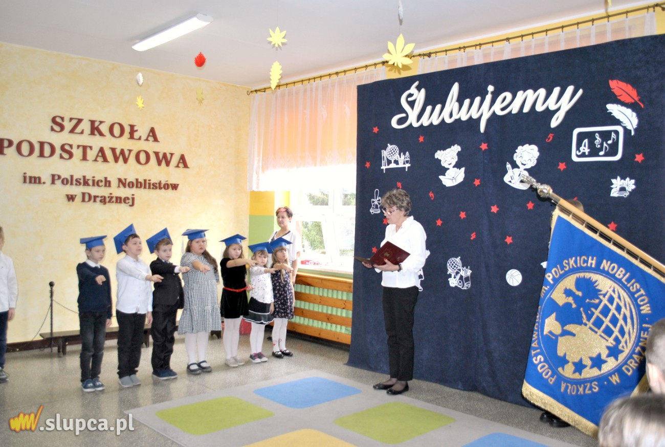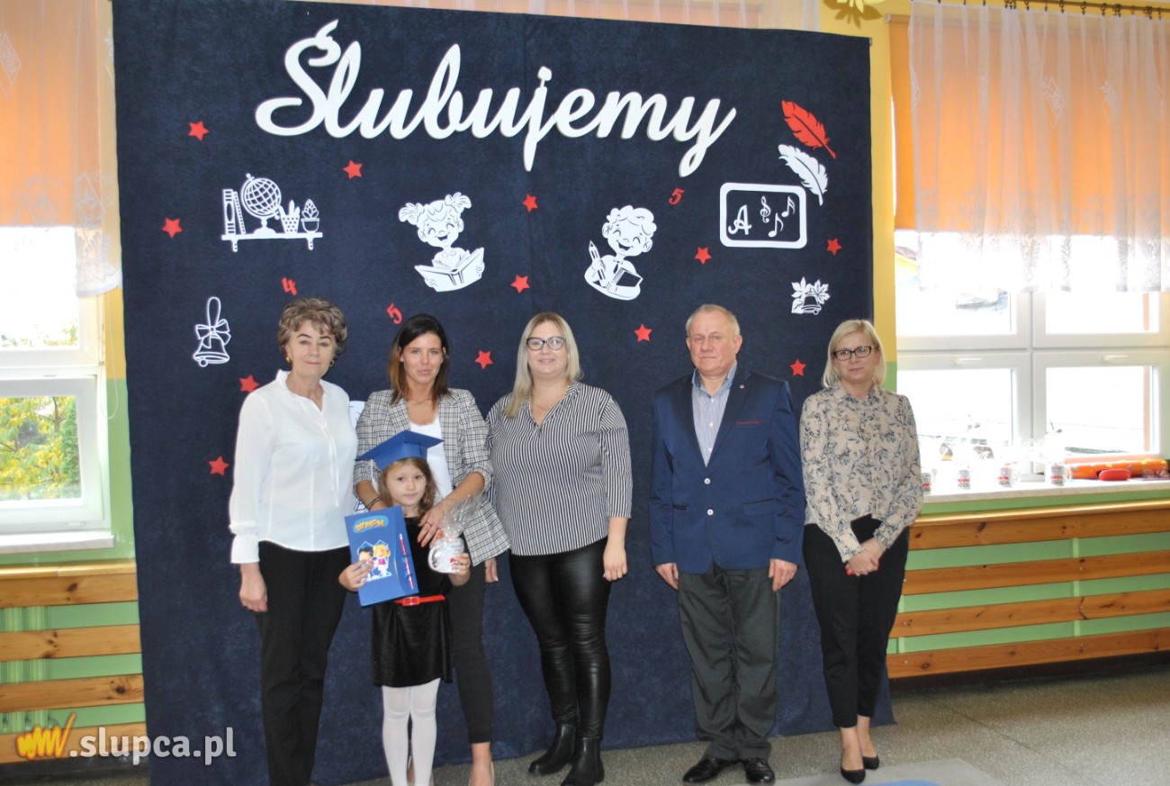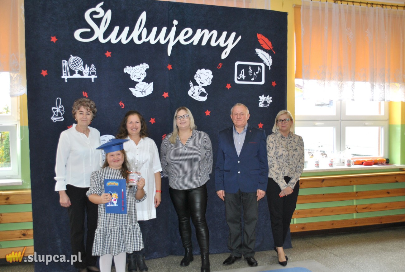 Jednak najważniejszą częścią uroczystości było ślubowanie oraz pasowanie wielkim ołówkiem przez Panią Dyrektor Danutę Samul. Pierwszaki głośno i z przekonaniem przyrzekały: być dobrymi uczniami i Polakami, godnie reprezentować swoją klasę i szkołę, zachowaniem i nauką sprawiać radość rodzicom i nauczycielom.