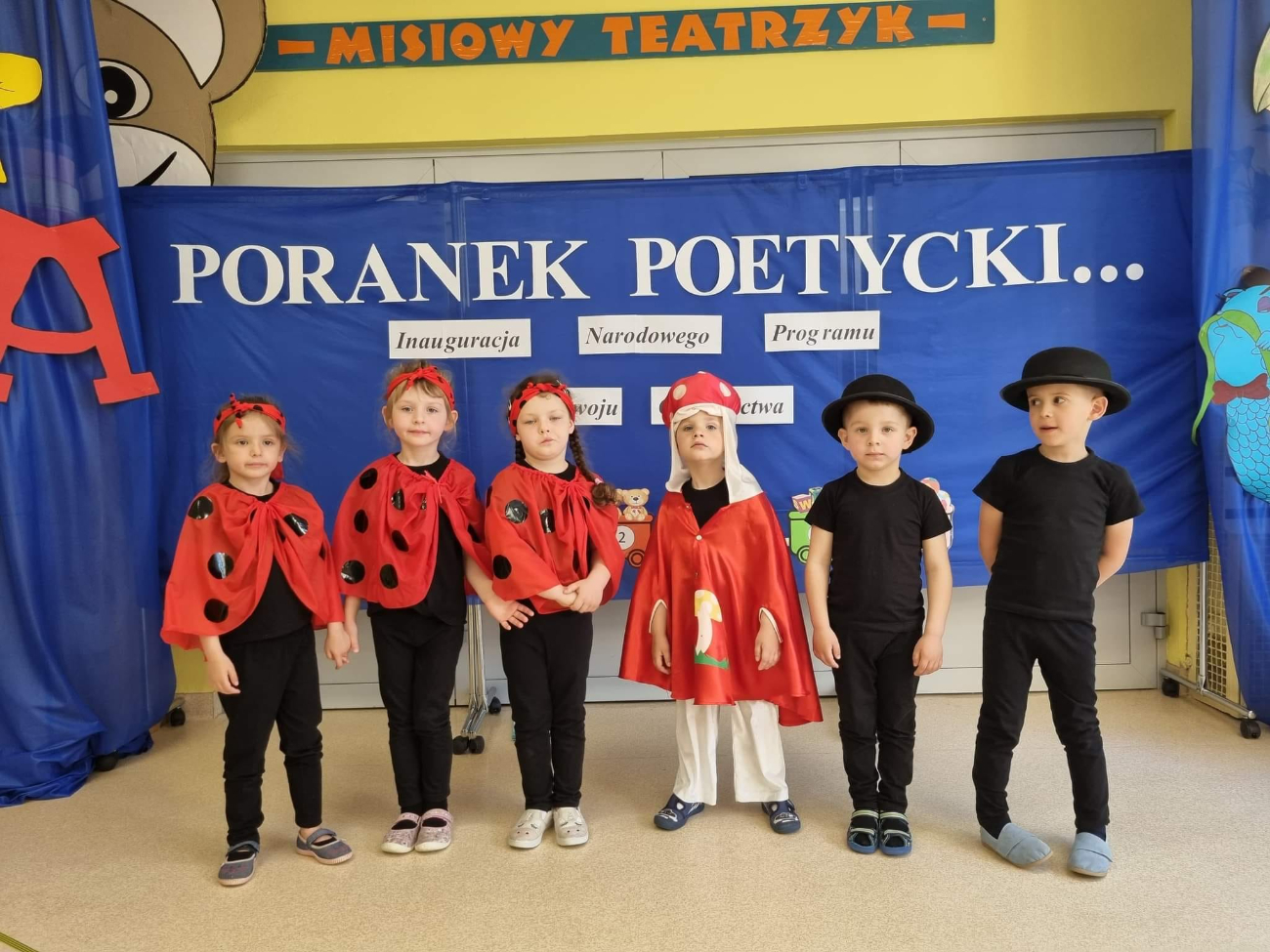 Wczoraj w przedszkolu Miś w Słupcy odbył się uroczysty Poranek Poetycki z okazji inauguracji Narodowego Programu Rozwoju Czytelnictwa. Dzieci z poszczególnych grup (Krasnale,Pajace, Słoneczka, Biedronki, Pszczółki, Wiewiórki i Stokrotki) zaprezentowały interpretacje wierszy Jana Brzechwy i Juliana Tuwima. Artystyczne ujęcie literackich utworów ( „Abecadło”, „Kaczka Dziwaczka”,”Żuk”, „Lokomotywa”,”Okulary”, „Sum”, „Słoń Trąbalski”) było bardzo ciekawe i inspirujące. – Dzieci w swoich rolach czuły się naturalnie i swobodnie. Każde dziecko wie, że książka uczy, bawi i wychowuje. Chętnie sięgamy po nią w wolnej chwili – mówią panie z przedszkola.